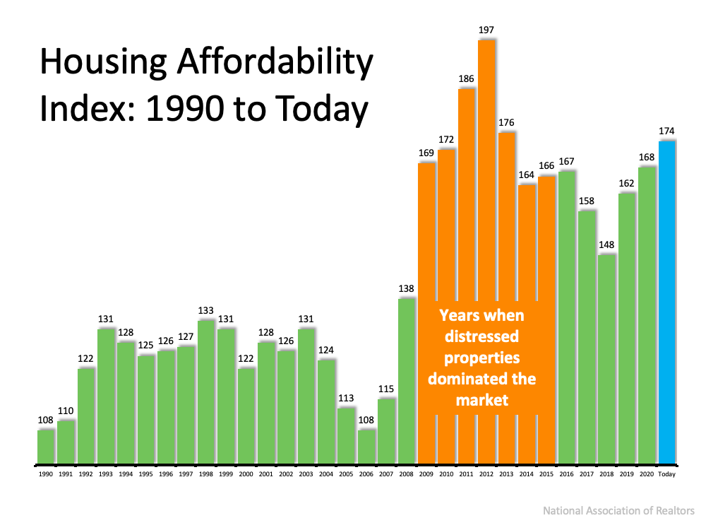 Although there are three factors that drive the overall equation, the one that's playing the largest part in today's homebuying affordability is historically low mortgage rates. Based on this primary factor, we can see that it's more affordable to buy a home today than at any time in the last eight years.
